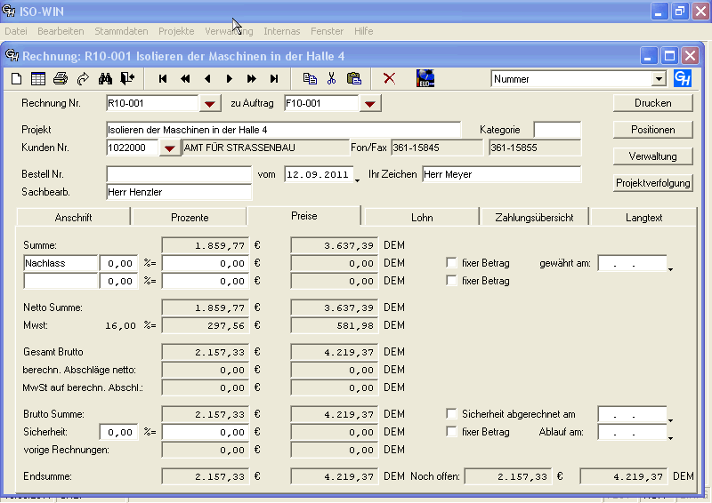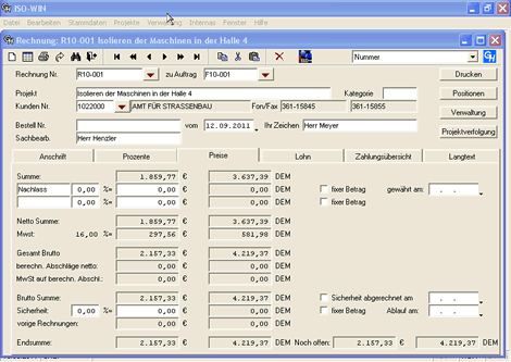 ISO-WIN ist die Branchenlösung für den WKSB-Betrieb, vom Angebot über Auftrag und Aufmass bis hin zur Rechnung und Nachkalkulation ist alles drin.